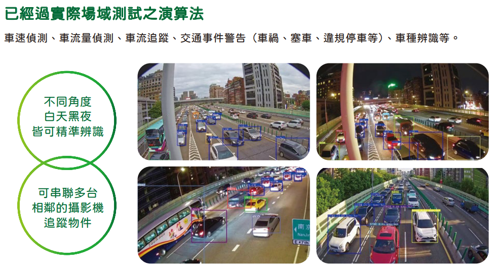以交通應用為例,串聯多台攝影機蒐集的影像可以直接在邊緣端運算並分析,達成即時警示,有效協助交通及警政單位管理複雜交通並進行科技執法,針對突發交通狀況作出決策,使民眾能享受順暢、便利、安全的交通環境。