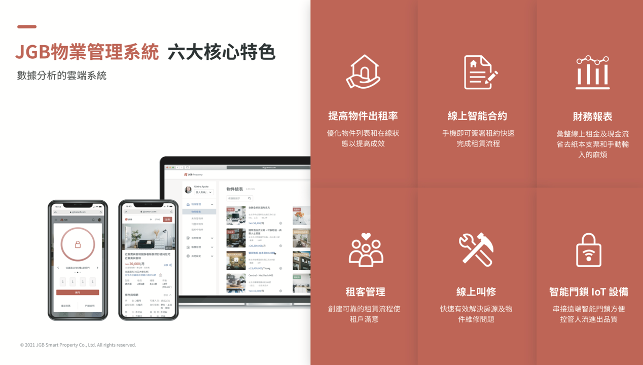 一站式All-in-One不動產租賃管理系統,透過自動化的六大功能為傳統房地產業賦能,大幅節省管理上近70%時間。