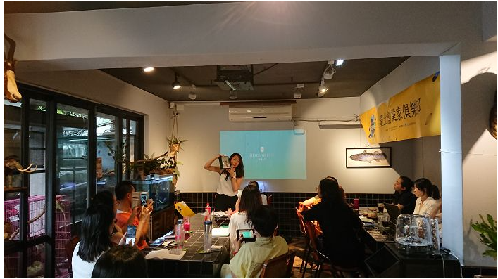 上圖:行政院新創基地進駐團隊好好文薈工作室楊偉苹創辦人,說明如何將文化、創意融入生活,以美好的生活為核心,著重質感風格的人事物為半徑,藉由各種有趣的課程講座、合作提案及內容型態,透過人與人間的真實連結與交流,在生活場域串連起人們對於日常美好的想像。