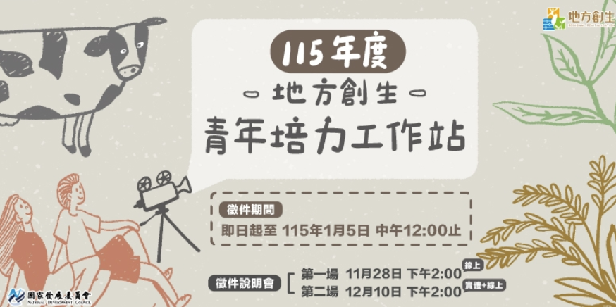115年度補助「地方創生青年培力工作站」徵件報名系統連結: https://tier.surveycake.biz/s/DVGnR