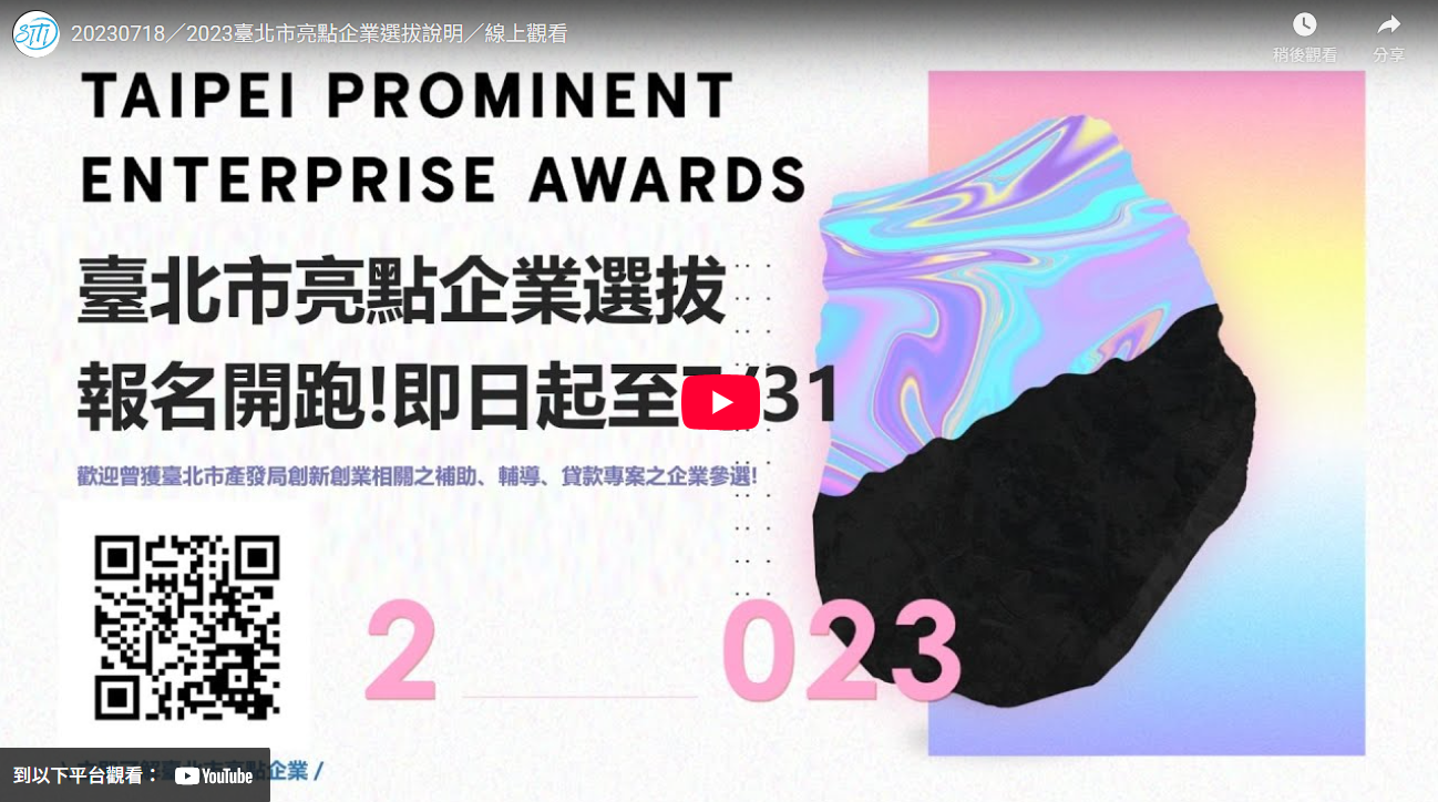 20230718/2023臺北市亮點企業選拔說明/線上觀看